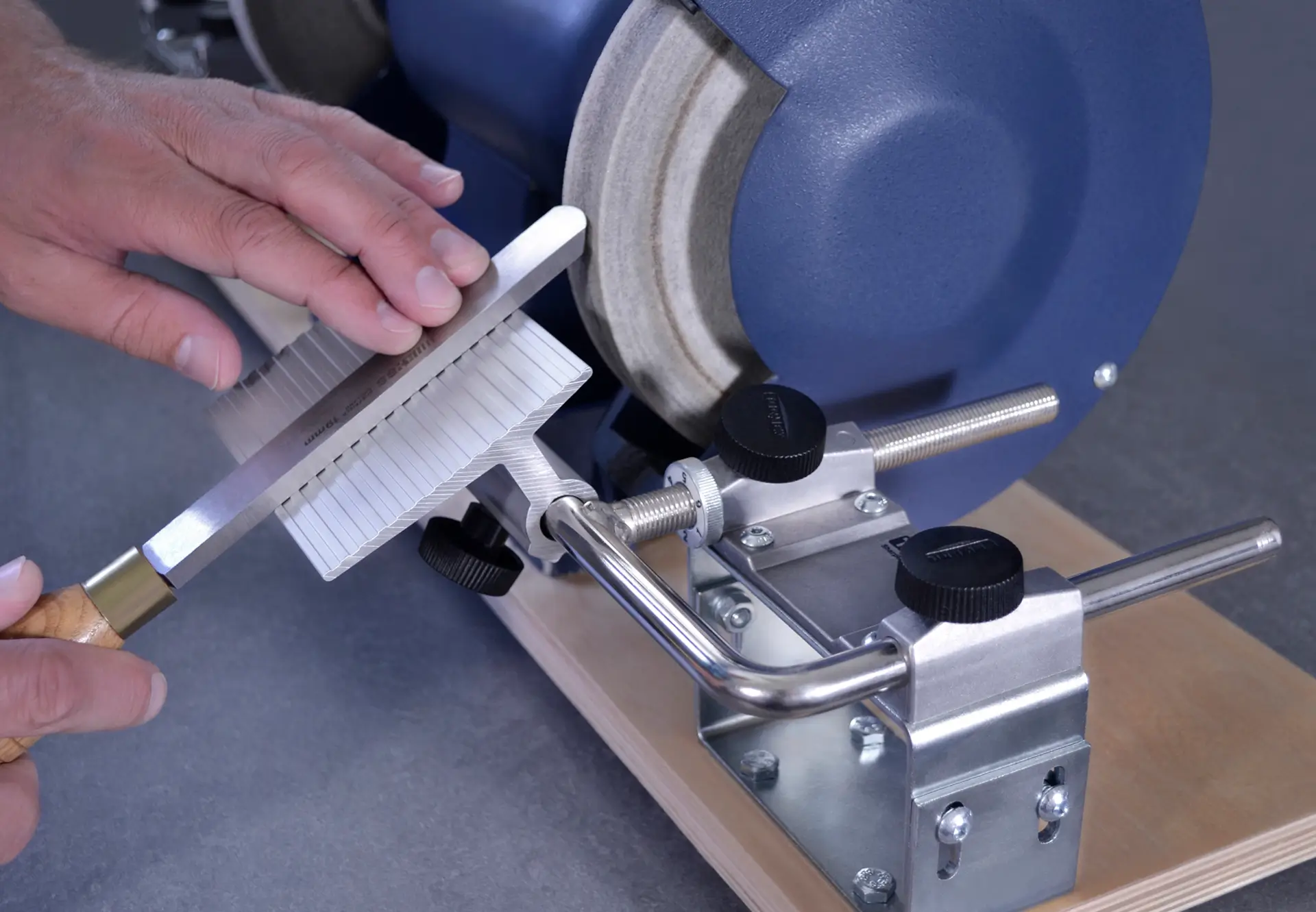 If you don't yet have a Tormek machine, you can still take advantage of Tormek's precise jig system on your bench grinder and easily create the desired shape and angle. The principle of setting the shape and sharpening angle is the same no matter which machine you use. If you later decide to expand your workshop to include a Tormek, then you already have the jigs you need for your woodturning tools.