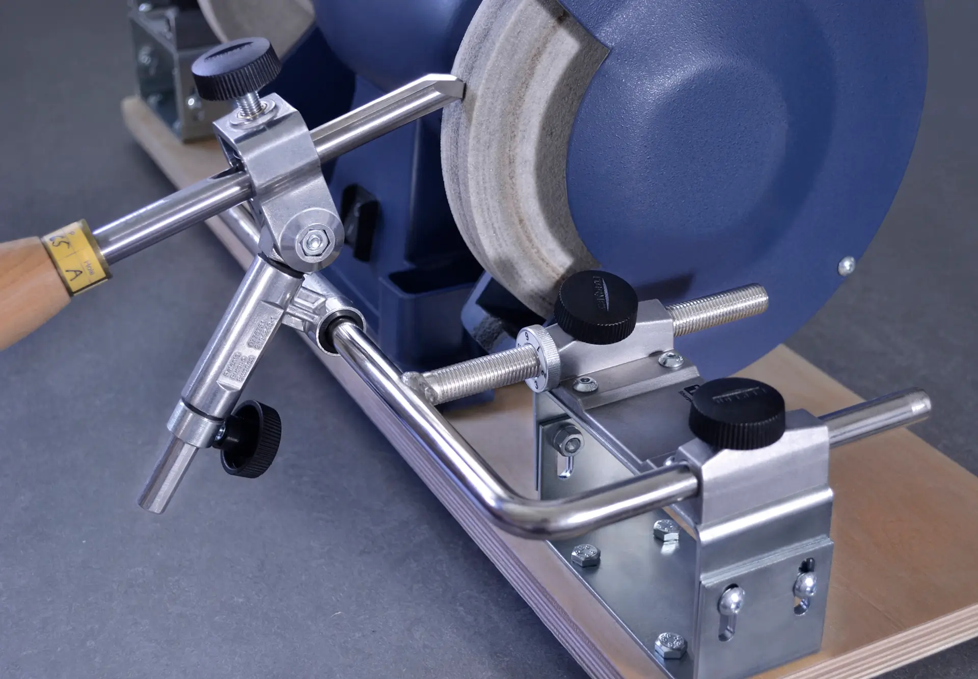 Regardless of the type of sharpening machine you use, the most difficult part of sharpening woodturning tools is accurately repeating the shape and sharpening angle. The BGM-100 Bench Grinder Mounting Set allows you to use the SVD-186 R Gouge Jig, SVS-50 Multi Jig, SVD-110 Tool Rest and TTS-100 Turning Tool Setter on your bench grinder. This allows you to easily repeat your sharpening, over and over again.