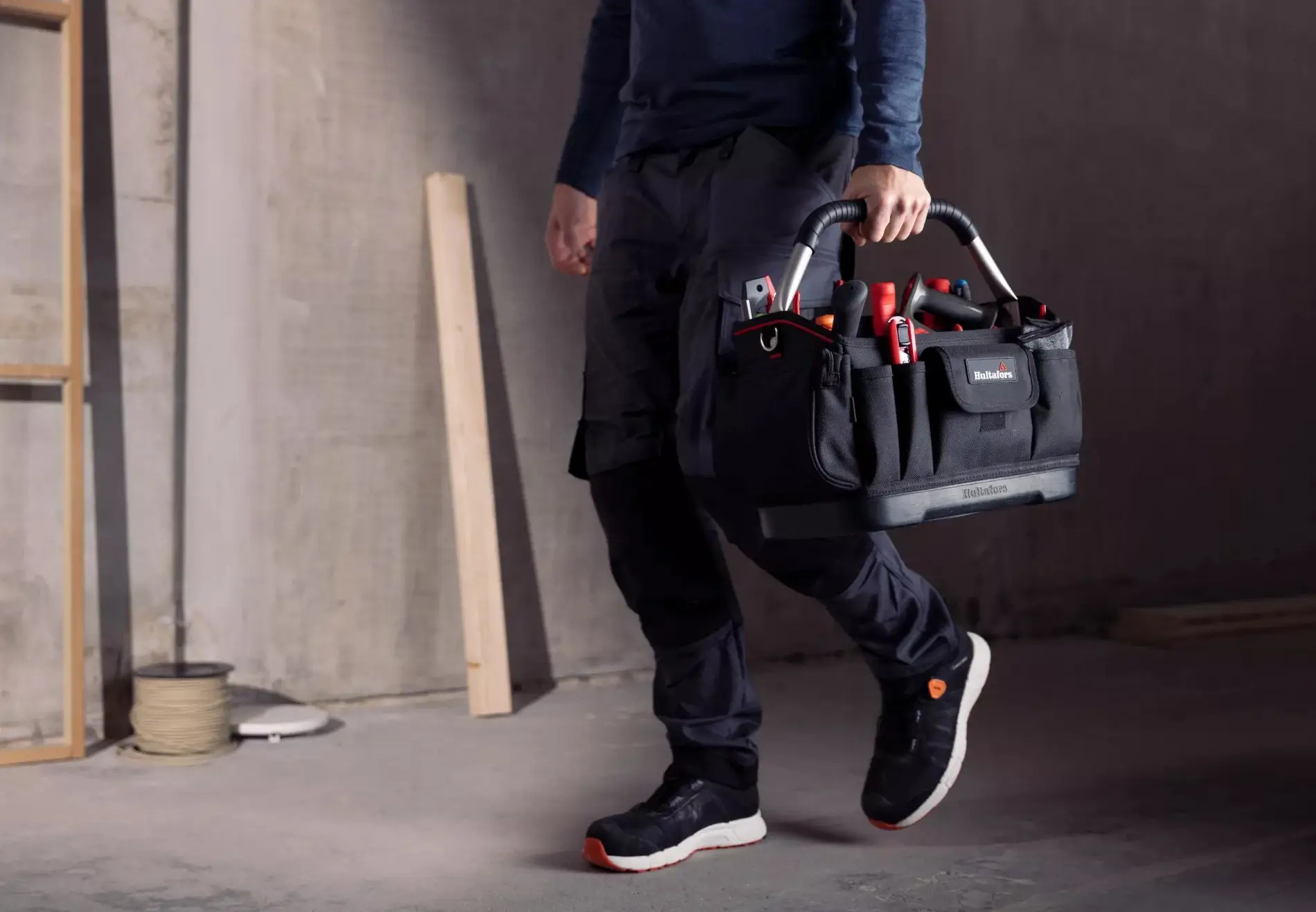 It also features a robust molded base that prevents the bag from tipping over, protects the bottom from moist, dirt and wear - and keeps your tools dry.