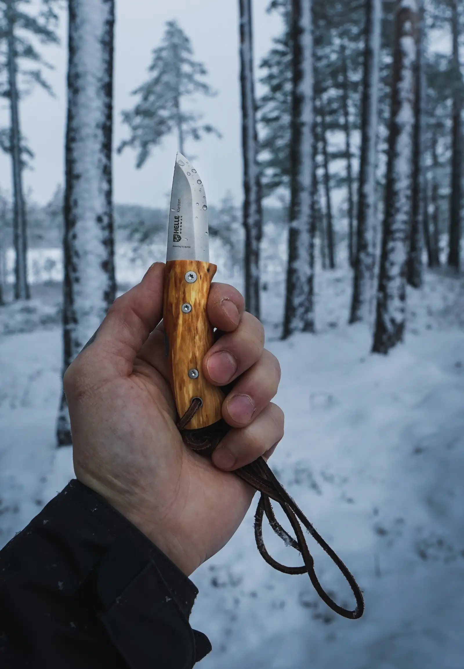 - Curly birch handle: Beautiful curly birch scales shaped for a secure three-finger grip, delivering comfort and a classic Helle aesthetic.​