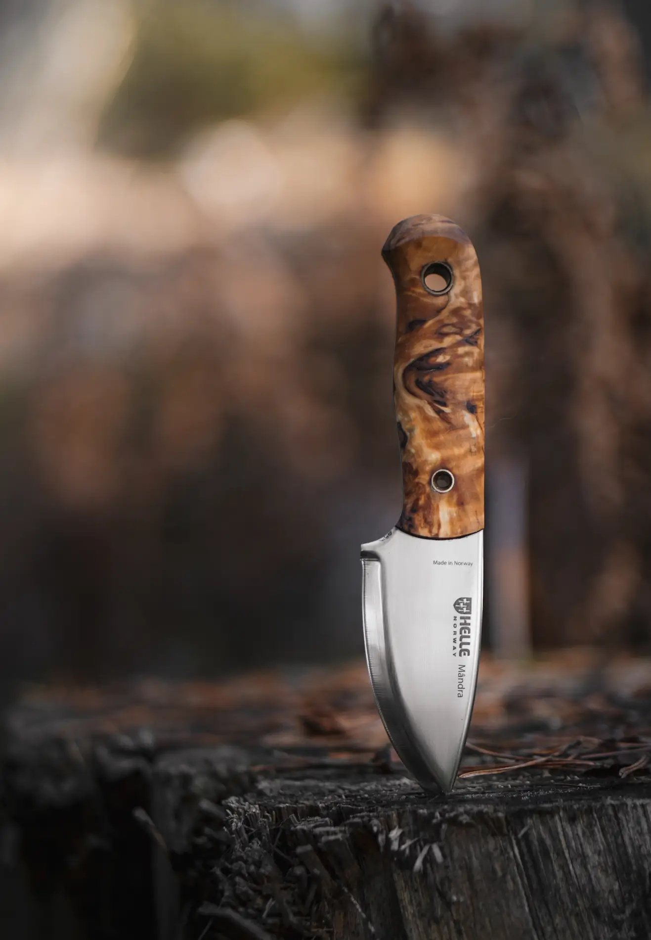 The Helle Mândra is a compact, versatile outdoor knife developed in collaboration with Les Stroud, designed for everyday adventure, bushcraft, and survival tasks.