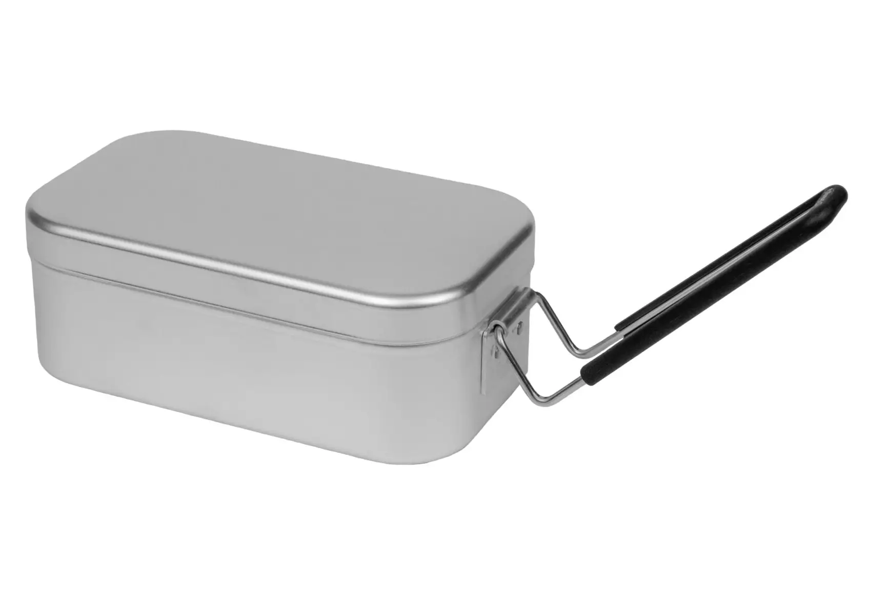Compact 0.75 L Trangia Small Mess Tin with black detachable handle, Swedish‑made aluminium box sized for 1–2 people, ideal for solo cooking, boiling water, and organizing survival or first aid kits.