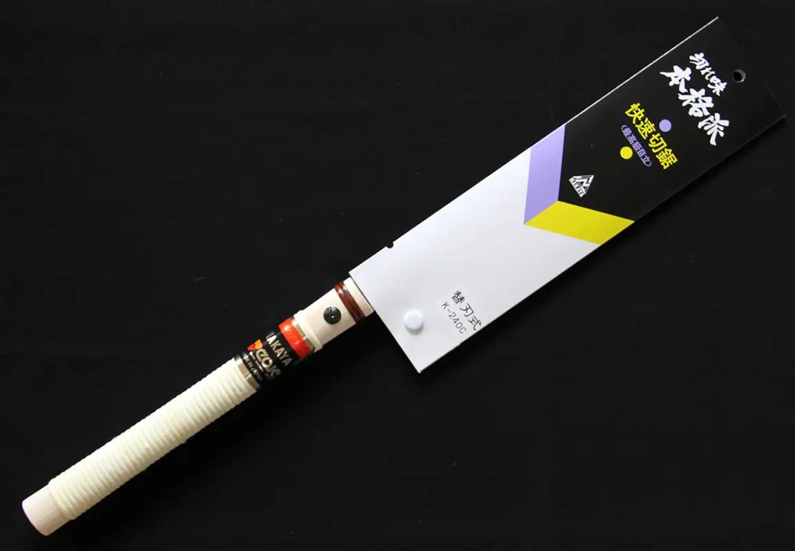 Professional-grade Nakaya K240C Dozuki “Kaisoku” pull saw with a 240 mm, ultra-thin replaceable blade for fast, ultra-clean cuts in hardwoods, softwoods, and sheet goods—ideal for precise joinery, furniture making, and interior carpentry.