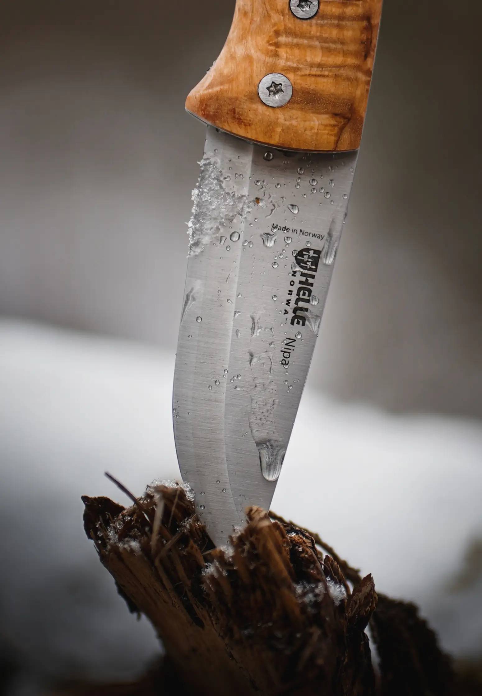 The Helle Nipa is a minimalist, mid-size folding knife designed for those who want a traditional Scandinavian feel in a modern everyday carry tool. Its Scandi-ground 12C27 stainless steel blade comes razor-sharp and is robust enough for wood carving, camp chores, and daily cutting tasks while resisting corrosion in harsh outdoor conditions. The rounded, hand-sanded curly birch handle offers a warm, natural grip that fills the hand, and the reversible pocket clip makes it easy to keep the knife accessible on a belt, pocket, or pack strap.​