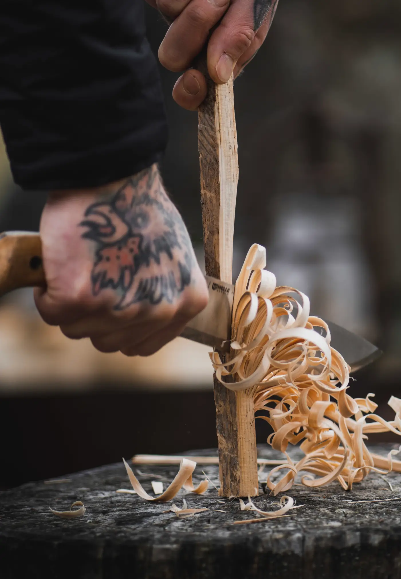 The Helle Nord Knife embodies the rugged spirit of the north, where strength and precision are essential. This classic model combines a robust 3.7 mm 14C28N stainless steel blade with a hand-shaped curly birch handle, delivering excellent balance for both cutting and whittling. The ergonomic design offers a secure grip close to the blade, making it ideal for detailed carving and heavier bushcraft work. Paired with a genuine black leather sheath, the Nord is a trusted companion for explorers, survivalists, and outdoor enthusiasts who value Scandinavian craftsmanship and reliability.
