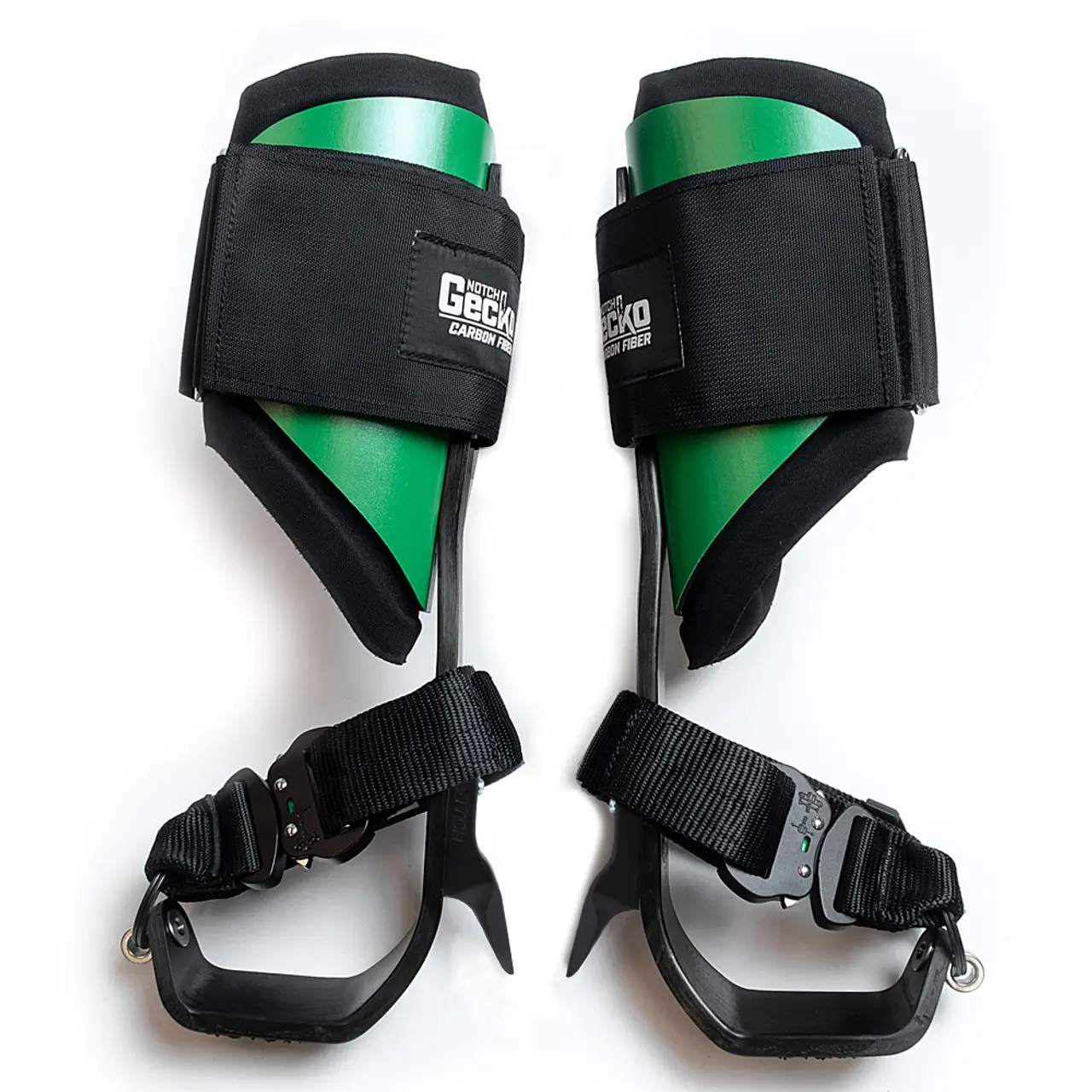 Notch Gecko® Carbon Fiber Climbers (Pole Gaffs) With Straps The Notch Gecko® Carbon Fiber Climbers have a stronger carbon fiber construction featuring new proprietary and custom fiber lay.