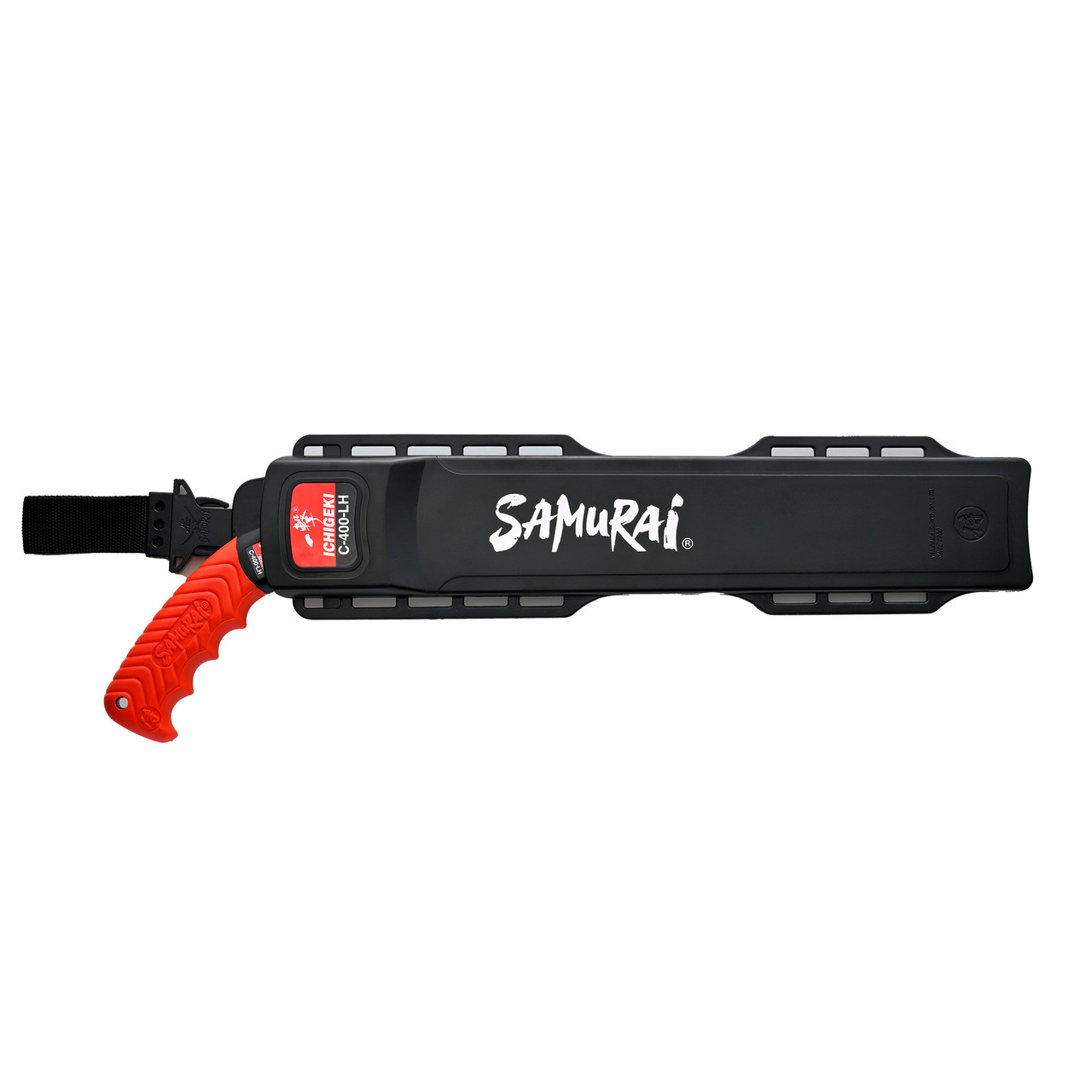 For safety and convenience, the Samurai Sumo includes a protective scabbard designed for saddle attachment or leg mounting with supplied straps, keeping the saw secure yet readily accessible while climbing or moving around the worksite.
