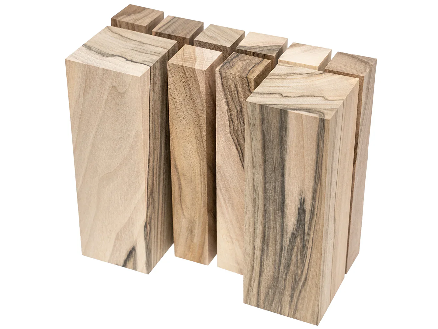 The BW10 European Walnut Set of Carving Blocks is designed for carvers who want both a satisfying working feel and a refined finished appearance. You receive ten blocks: two larger 2" x 2" x 6" blanks and eight 1" x 1" x 6" blocks, all pre-sanded so you can start carving immediately. European walnut brings a sophisticated mix of matte brown and light beige hues with a fine, attractive grain, giving even simple projects an upscale look.