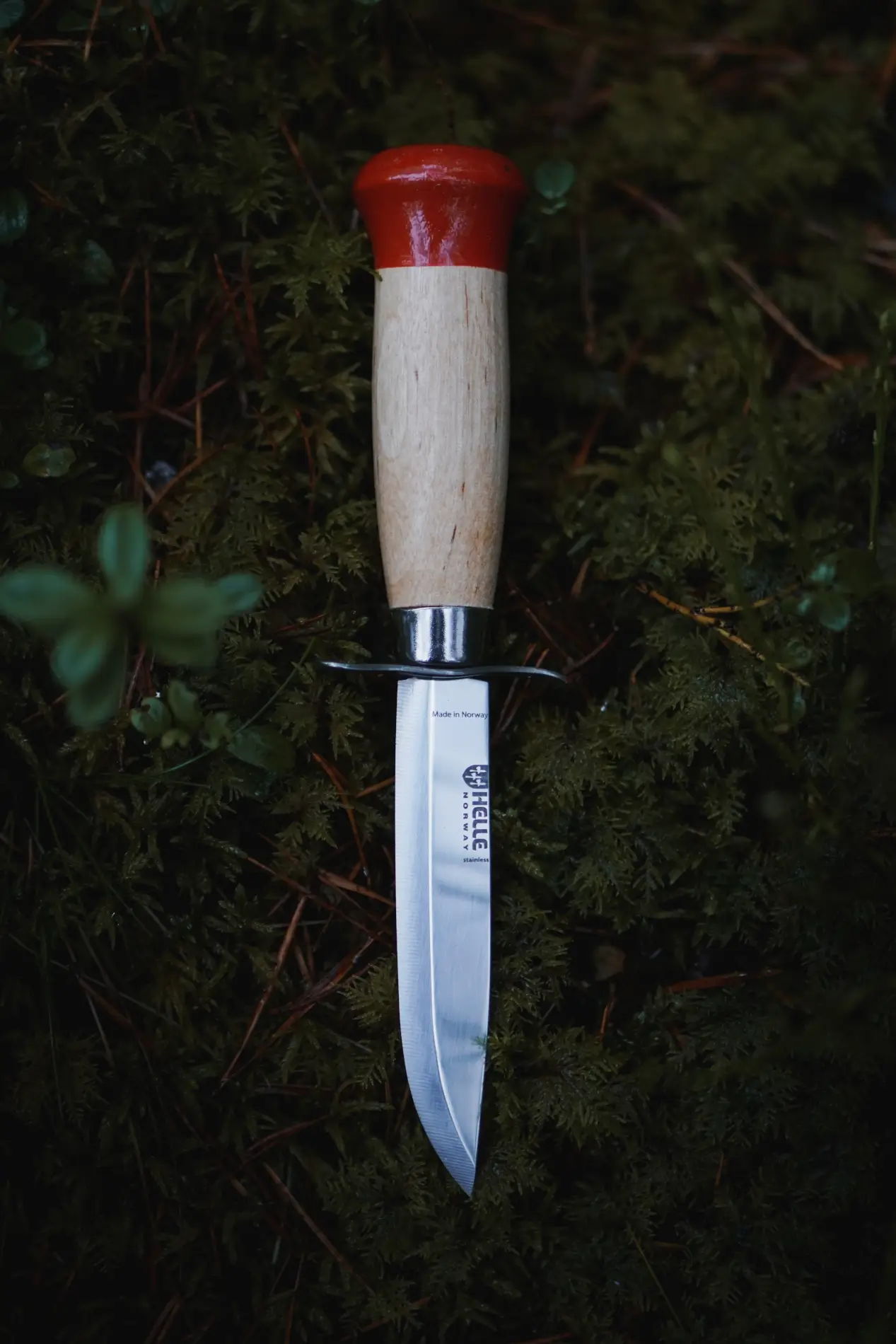 The Helle Speiderkniv Gutt is a classic scout knife designed for safe youth use, cherished for over 50 years as a reliable starter for learning outdoor skills.