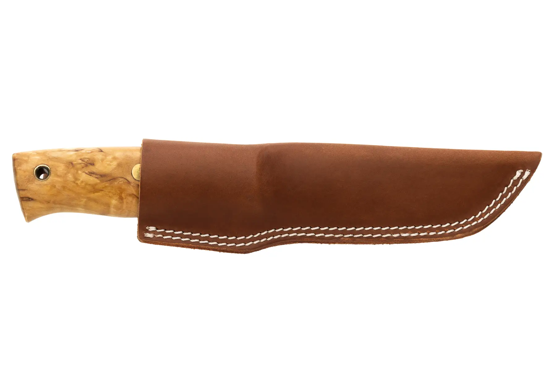 - Tan leather sheath with snug fit and belt loop for secure, stylish carry​