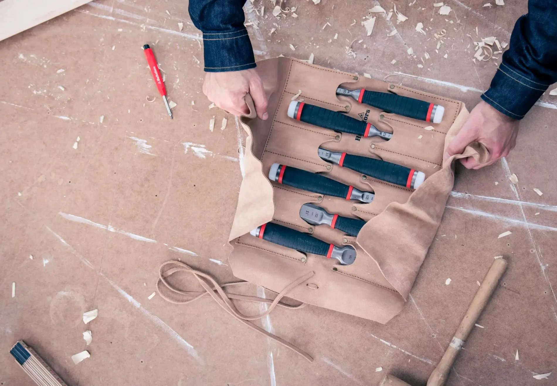 Store and protect your favourite tools in style with our leather tool roll. It protects both you and your tools. The layout makes it easy to get a good overview of your tools and to keep them organized.