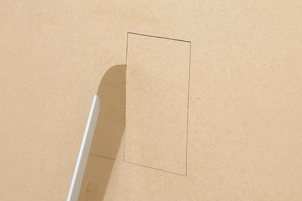 - Curved-tip tooth line enables starting cuts on flat surfaces and hole cutting in panels.
